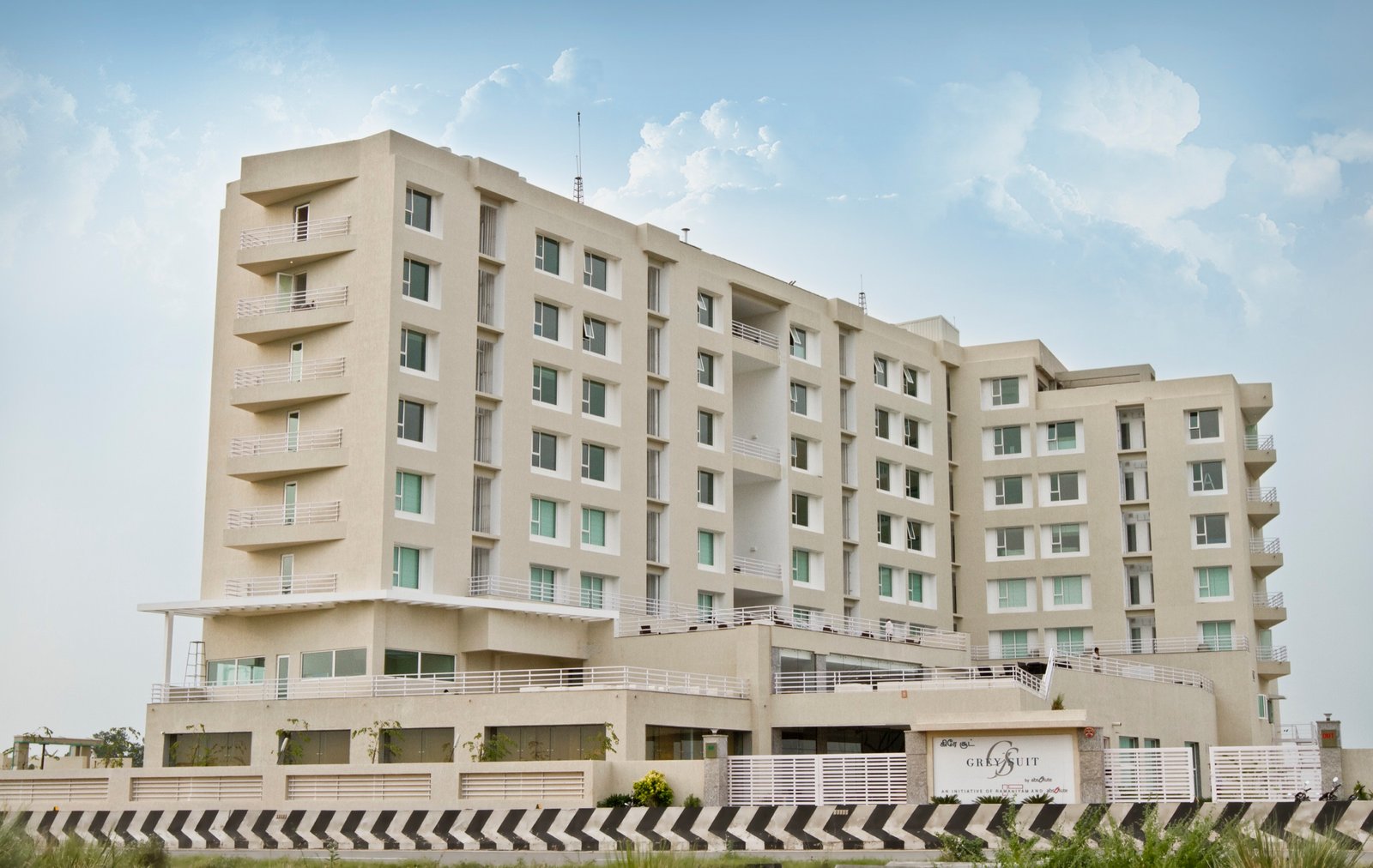 Hotel Grey Suit sits on the outskirts of Chennai, in Kakkavakkam — an hour's drive from the city and a world removed from it. 106 rooms, two banquet halls, a 24-hour kitchen, and a quiet pool set into the garden.